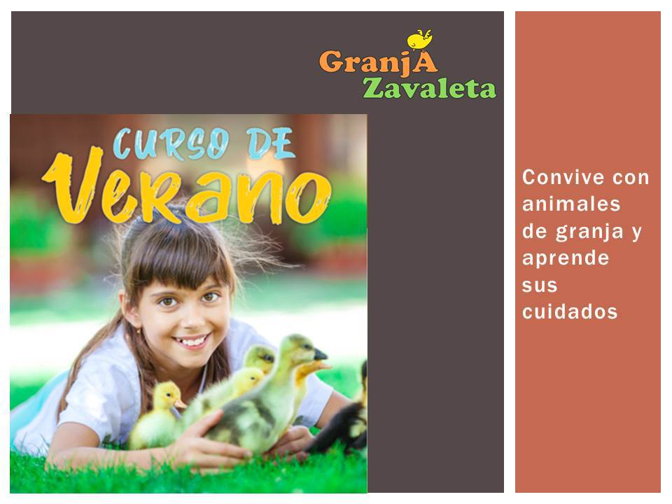El curso de verano de Granja Zavaleta es una opción diferente, donde tu hijo convivirá con animales de la granja en su entorno natural, aprendiendo acerca de sus cuidados. Haciendo uso de sus sentidos exporará el medio que lo rodea y aprenderá el proceso de trasnformación y elaboración de algunos alimentos, adquiriendo un aprendizaje para la vida.
